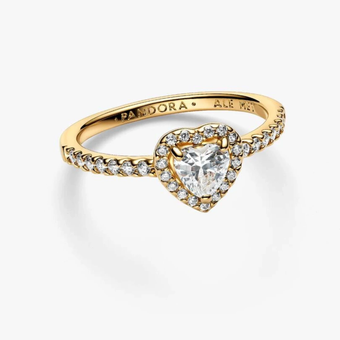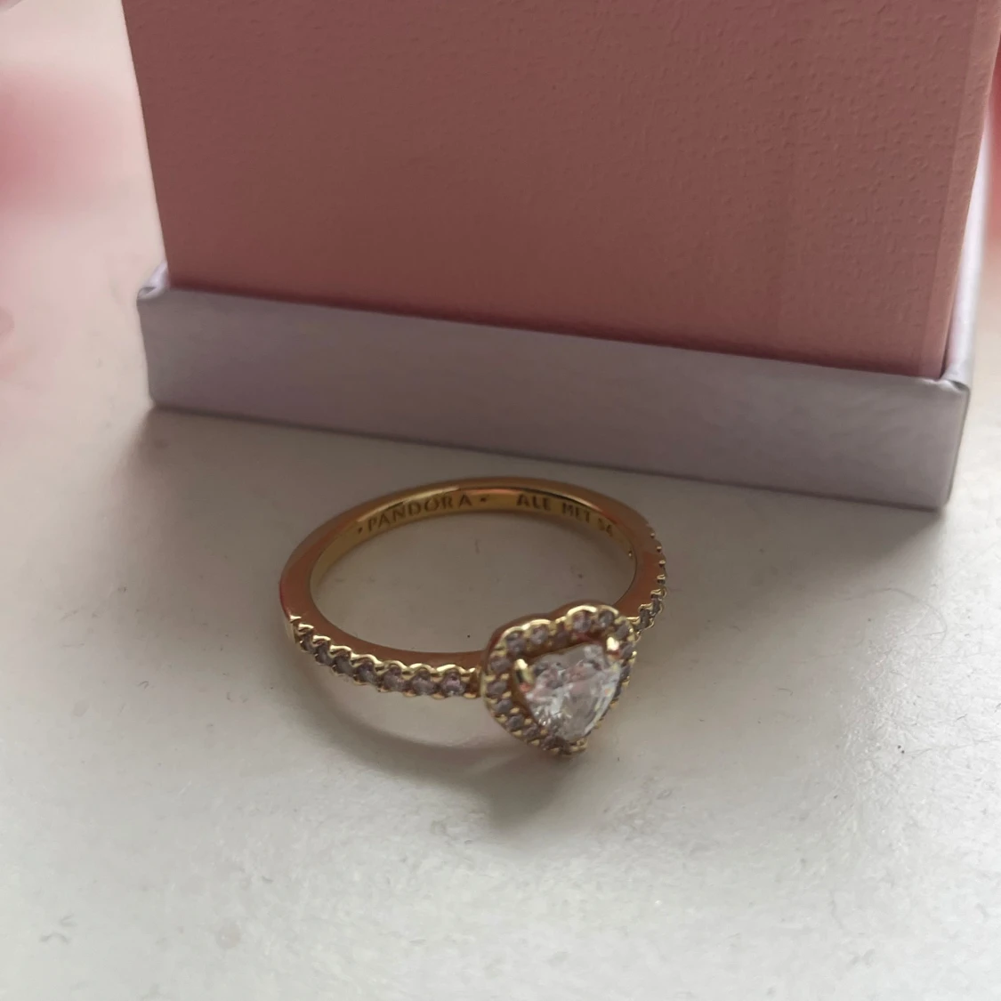 Ring i guld från Pandora med upphöjt hjärta. Mätte innerdiametern till 17 mm så det borde vara storlek 54 men är osäker. Använd men inga synliga defekter. Nypris 999 kr.