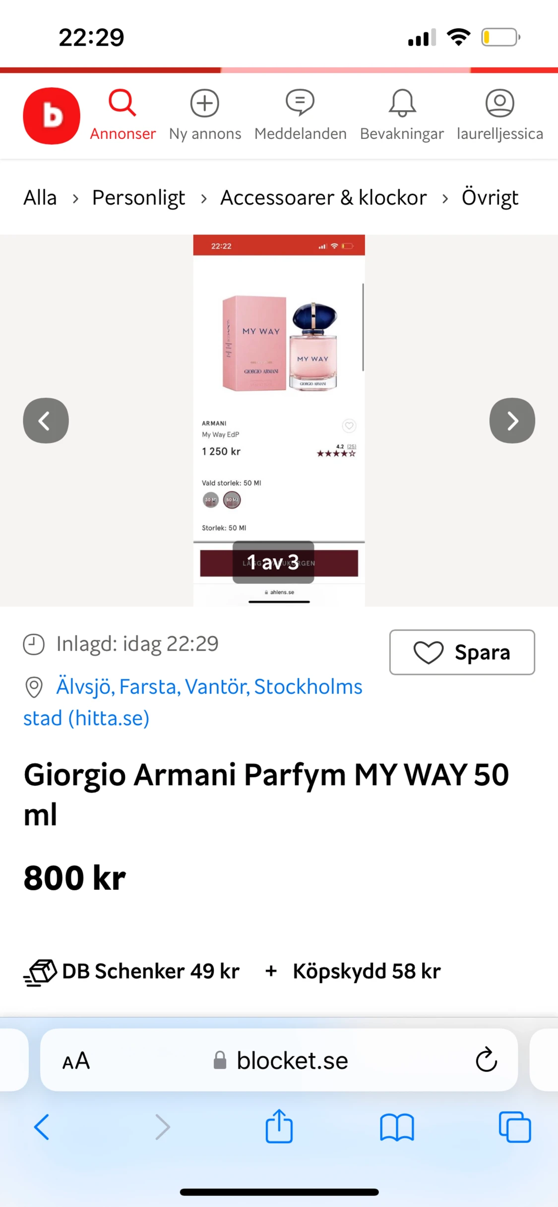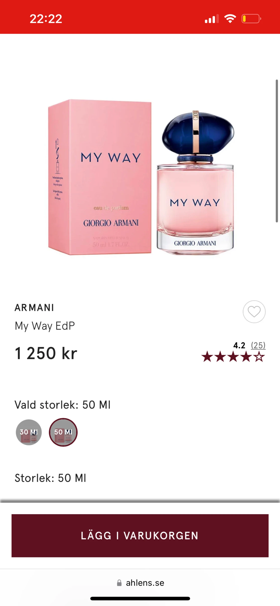 Giorgio Armani MY WAY parfym 50ml, ny i förpackning med plast på,säljer då jag fick den i present men redan har den, nypris Åhléns 1250kr