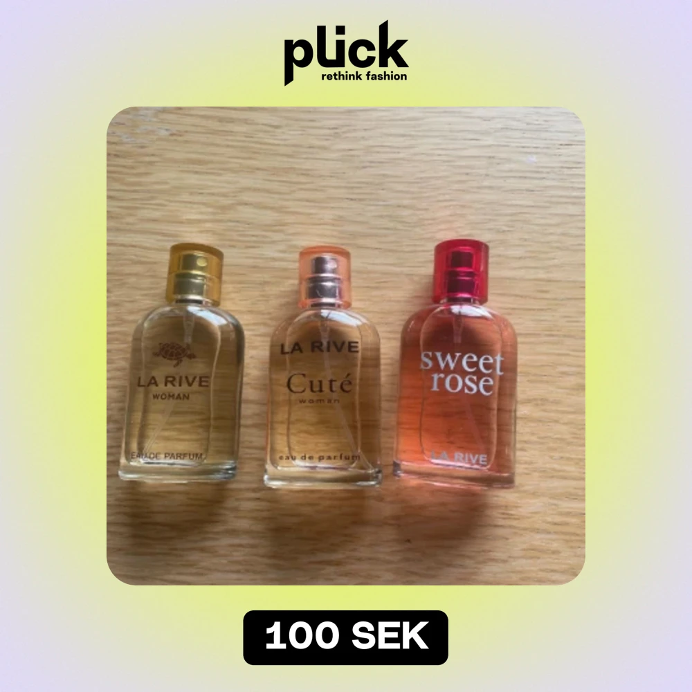 La rive parfymer. 40kr styck eller 100kr för alla tređž