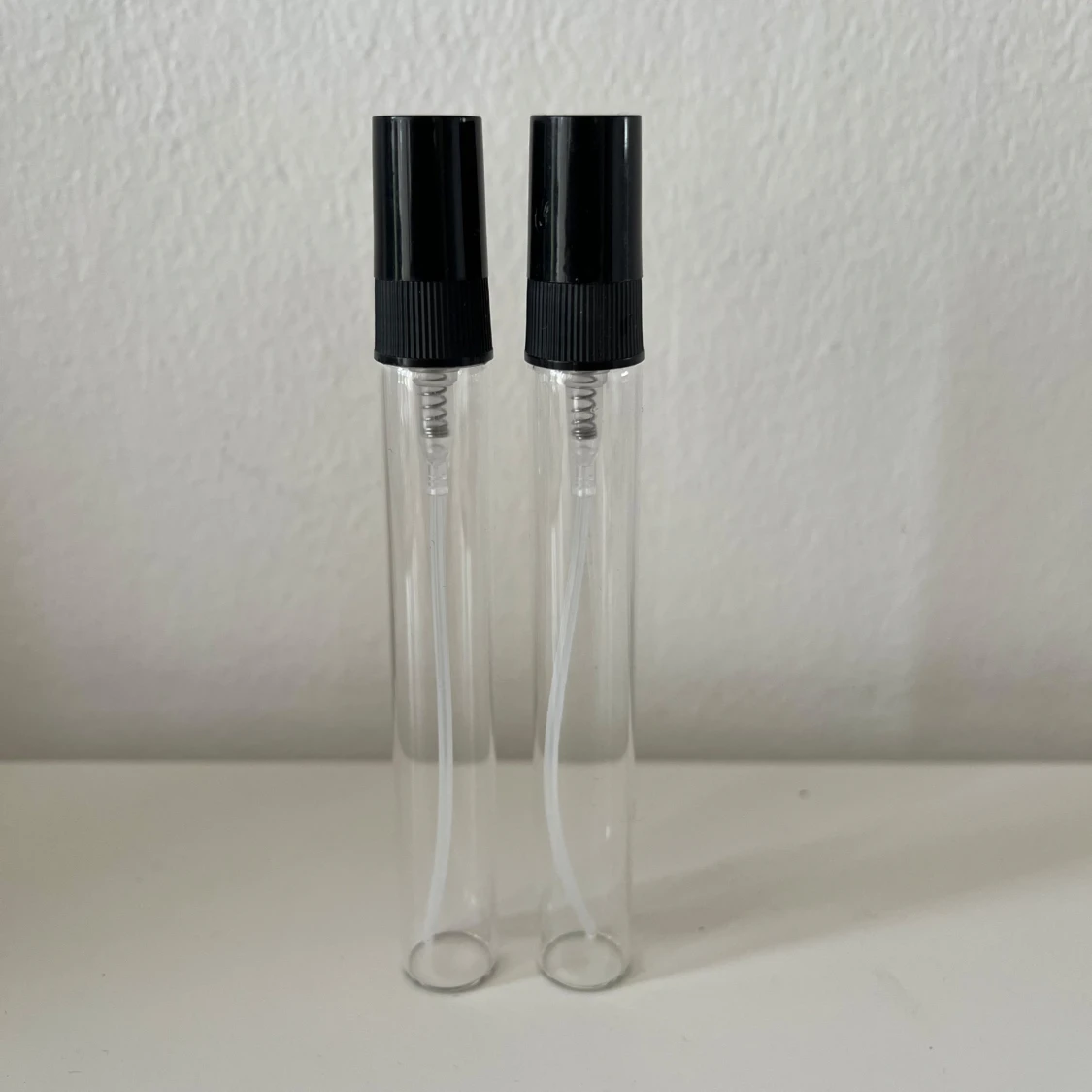 Två st glas parfymsbehållare. Perfekta att fylla med din favoritdoft och ta med i väskan. Smidig storlek för resor eller att ha i fickan. (Två pack)
