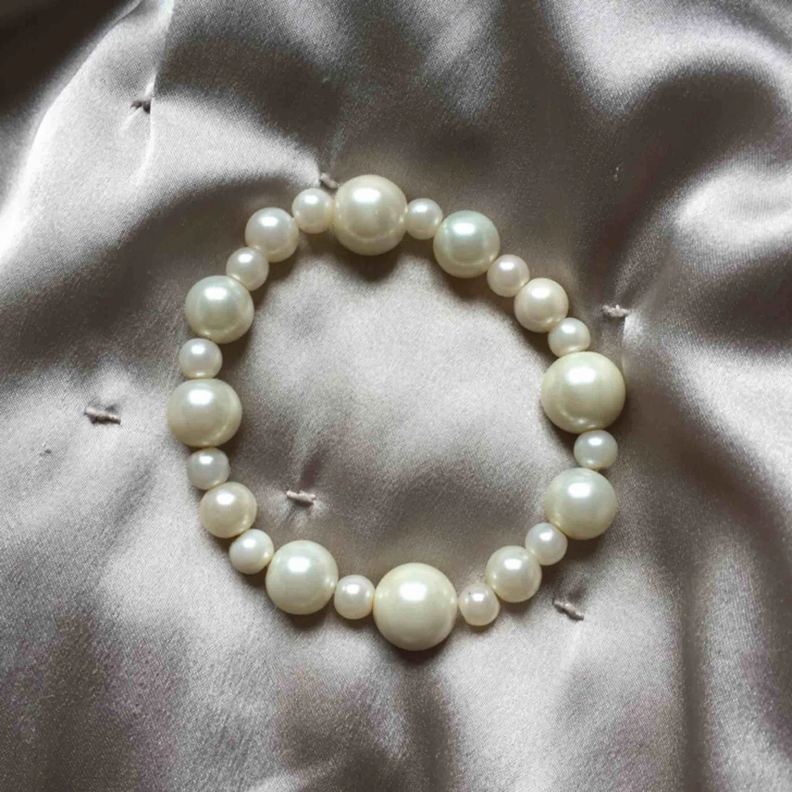 Pärlarmband. En av de små pärlorna har en liten Silvrig fläck som jag tror är nagellack.