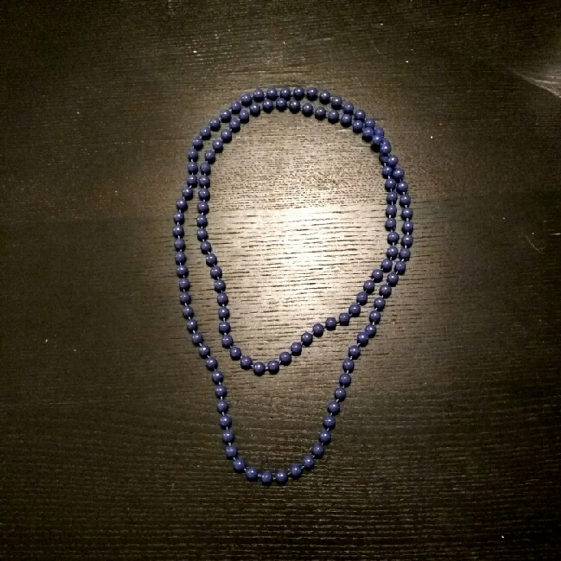 Blekblått pärlhalsband i plast Aldrig använd