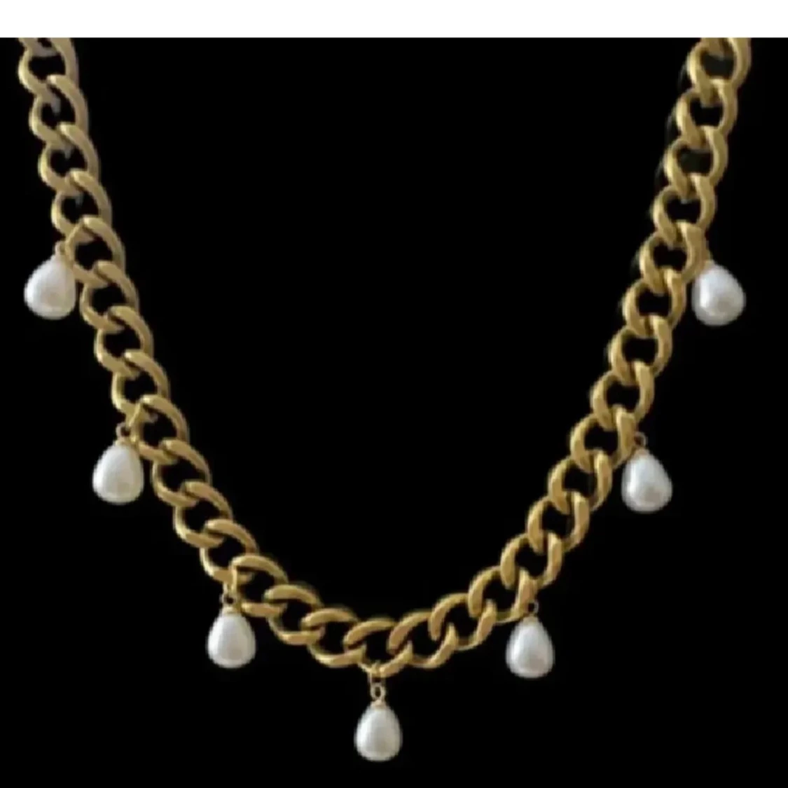 Jätte fint halsband med rostfritt stål med hängande vita pärlor. pris kan diskuteras 🥰