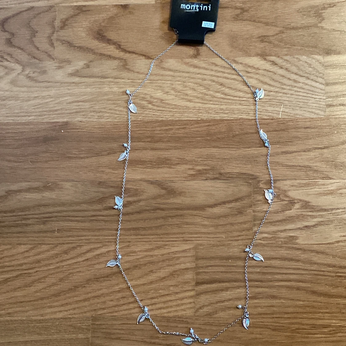 Oanvänt halsband från Montini med fina löv och pärlor på! Går att ställa in längd på💛