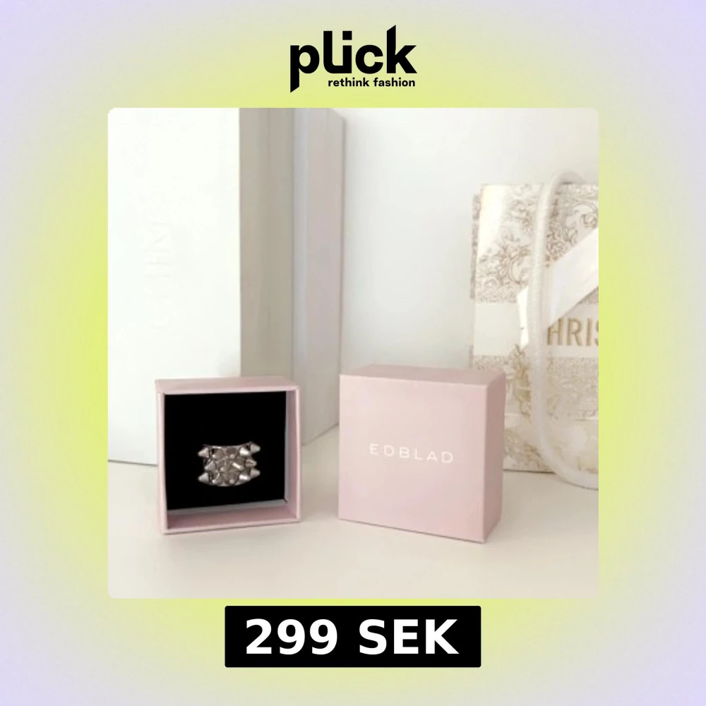 Elegant silverfärgad ring från Edblad med ett unikt, geometriskt mönster. Perfekt för att ge en stilren touch till din outfit. Kommer i en fin rosa presentask. Säljer strl 16.0 och 16.8