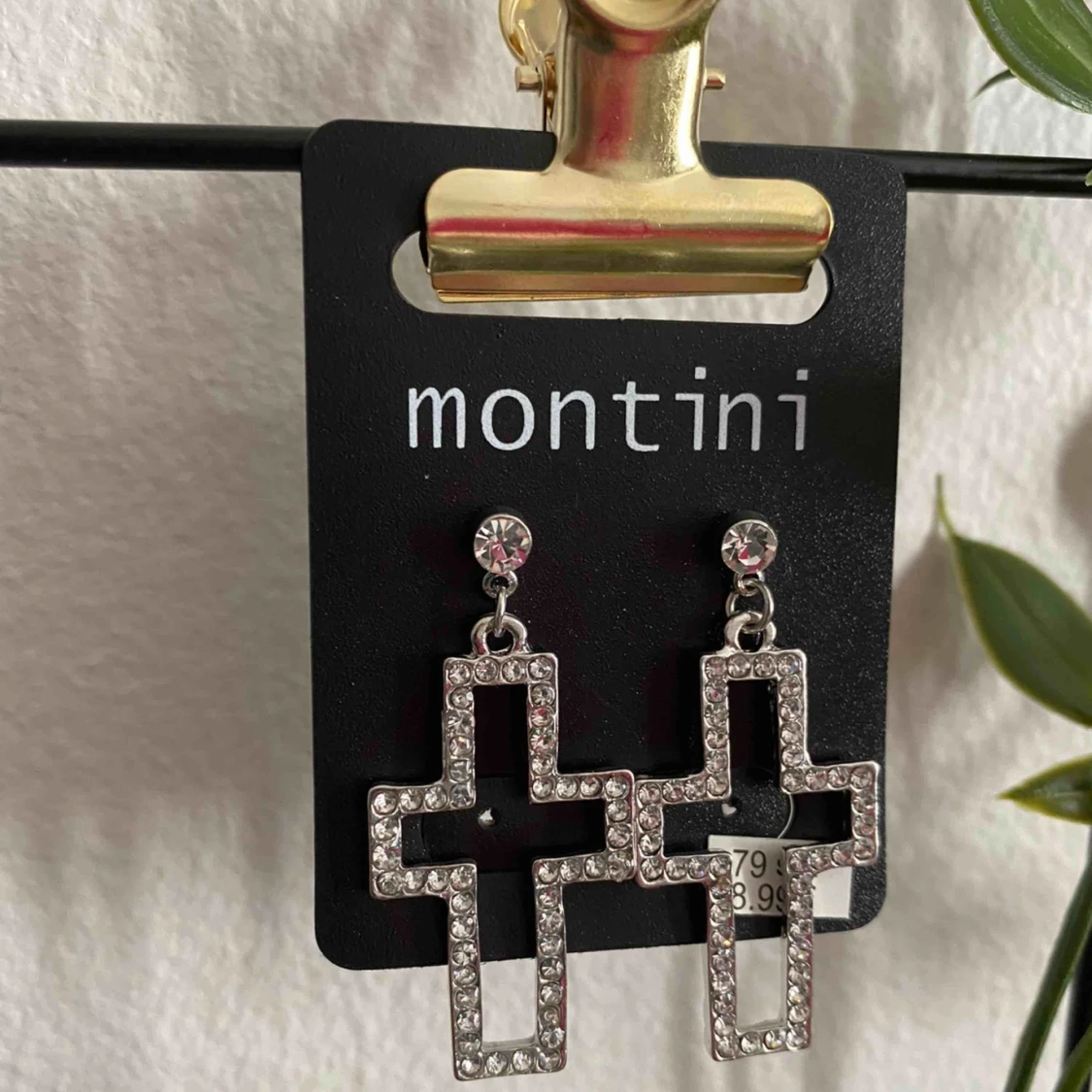 Ett par örhängen som är formade som kors med pärlor i. Helt i oäkta silver. Från ur & penn. Aldrig använda.