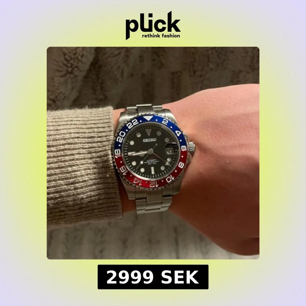 Säljer en tvär snygg Seiko klocka med en iögonfallande blå och röd bezel. Som efterliknar ”Pepsi” Klockan har en svart urtavla med datumvisning och en robust metallarmband. 40mm. Perfekt för den som vill ha en stilren och funktionell klocka. Klockan är automatisk, med en NH34 movement. Alla länkar tillkommer såklart vid köp.
