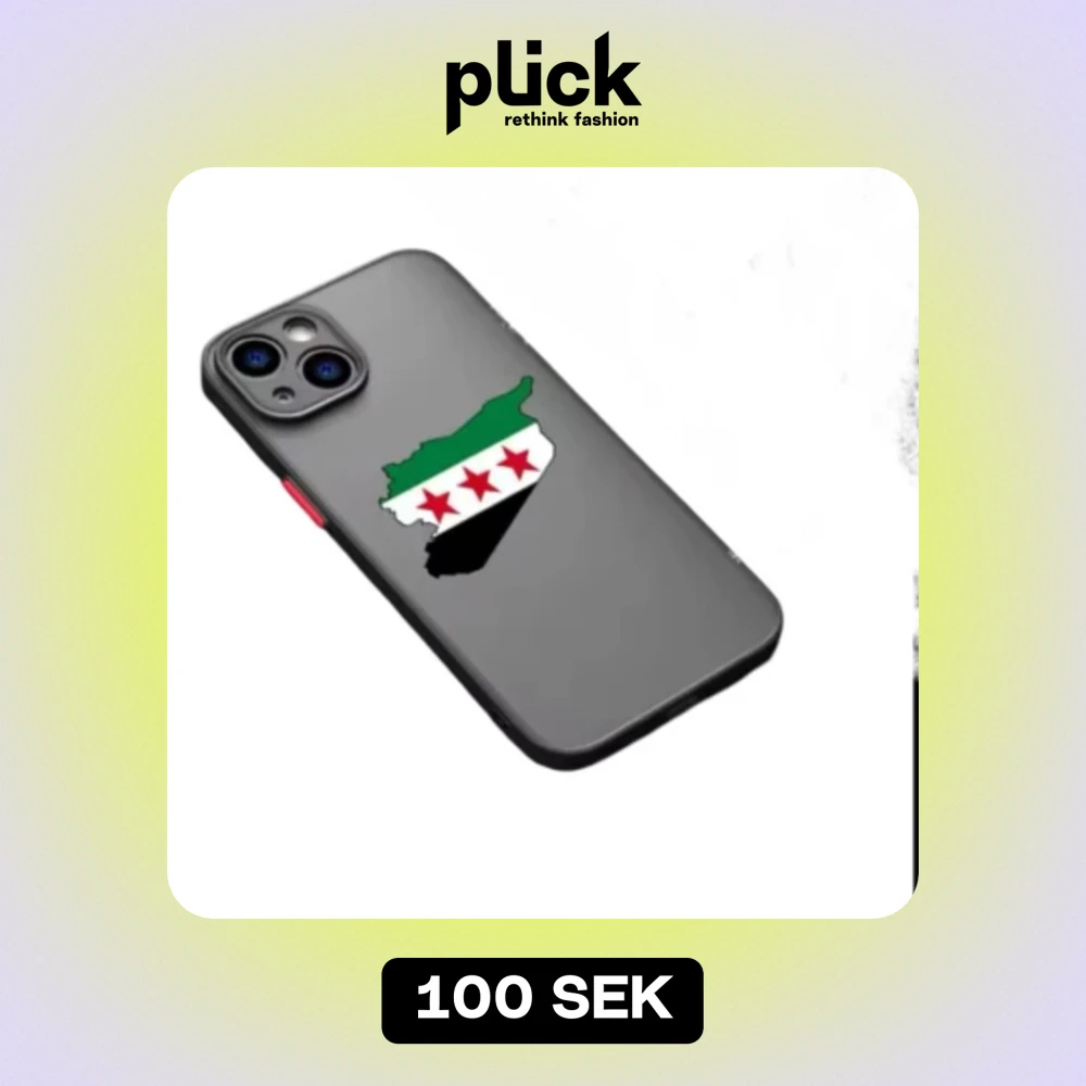 En mobilskal med Free Syria flaggan och Syriens geografi. Denna produkten finns tillgänglig för iPhone 15, 14, 13, 12, 11, 11 Pro