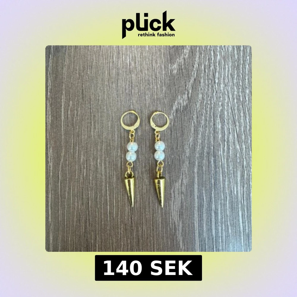 Snygga guldörhängen med två vita pärlor. Dem är handgjorda och nickelfria. Perfekta för att ge en edgy touch till din stil.