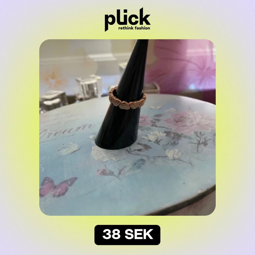 Ny ring från Pilgrim i roséfärgat rostfritt stål och storlek 17. Jättesöt ring med små hjärtan runt.