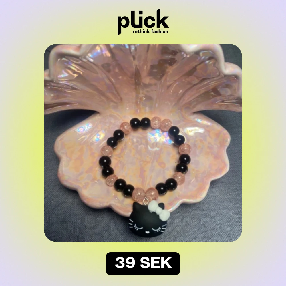 Rosa svart armband med ett söt hello Kitty hĂ€nge som soverđ„čđ€ 39kr.