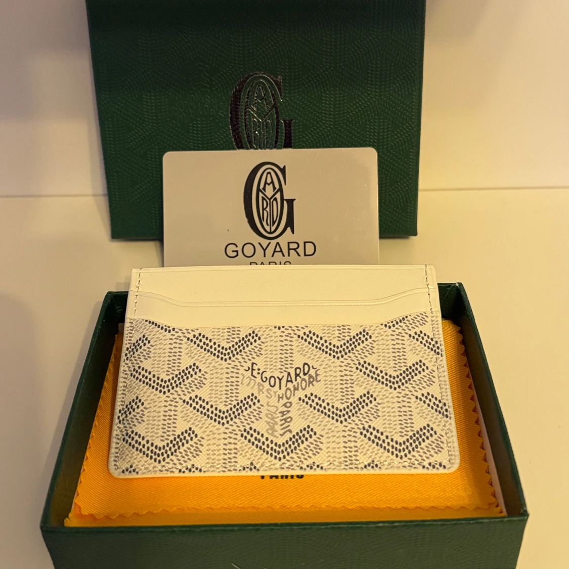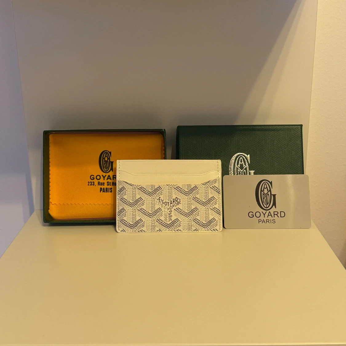 Supersnygg vit plånbok från G med deras ikoniska grafiska mönster i grått. Slimmad design med flera fack för kort, perfekt att ha i fickan eller väskan. Kommer med original ask och dustbag. Lyxig och stilren accessoar från Paris.