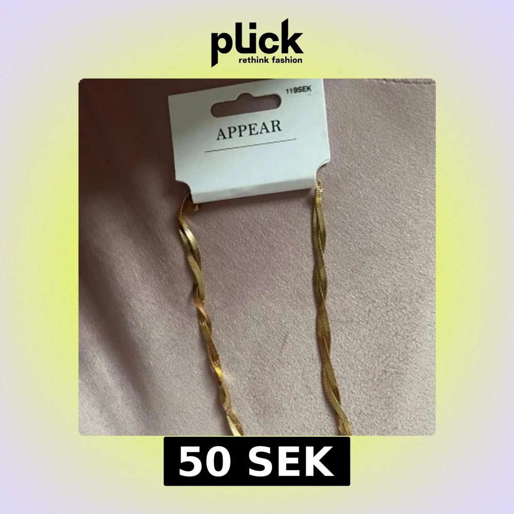 Säljer ett snyggt guldigt halsband från Appear med tvinnad design. Kedjan har en elegant vågig form som ger en modern och trendig look. Perfekt accessoar för att lyfta vilken outfit som helst.