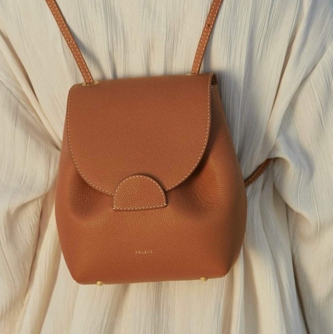 The “Numéro Uno Mini Backpack” väska från Polene. Justerbara remmar och kan användas både som ryggsäck och axelremsväska. Nyskick då jag fick den som gåva. Låda och dustbag medföljer Material: skinn Höjd 20,5cm Längd 18cm Djup 9cm Ordinarie pris 290€