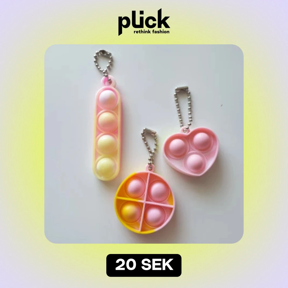 Pop-it, fidget toys Form: cirkel, avlång, hjärta, Färg: rosa och gul, Antal: 3st, Skick: nya/oanvända