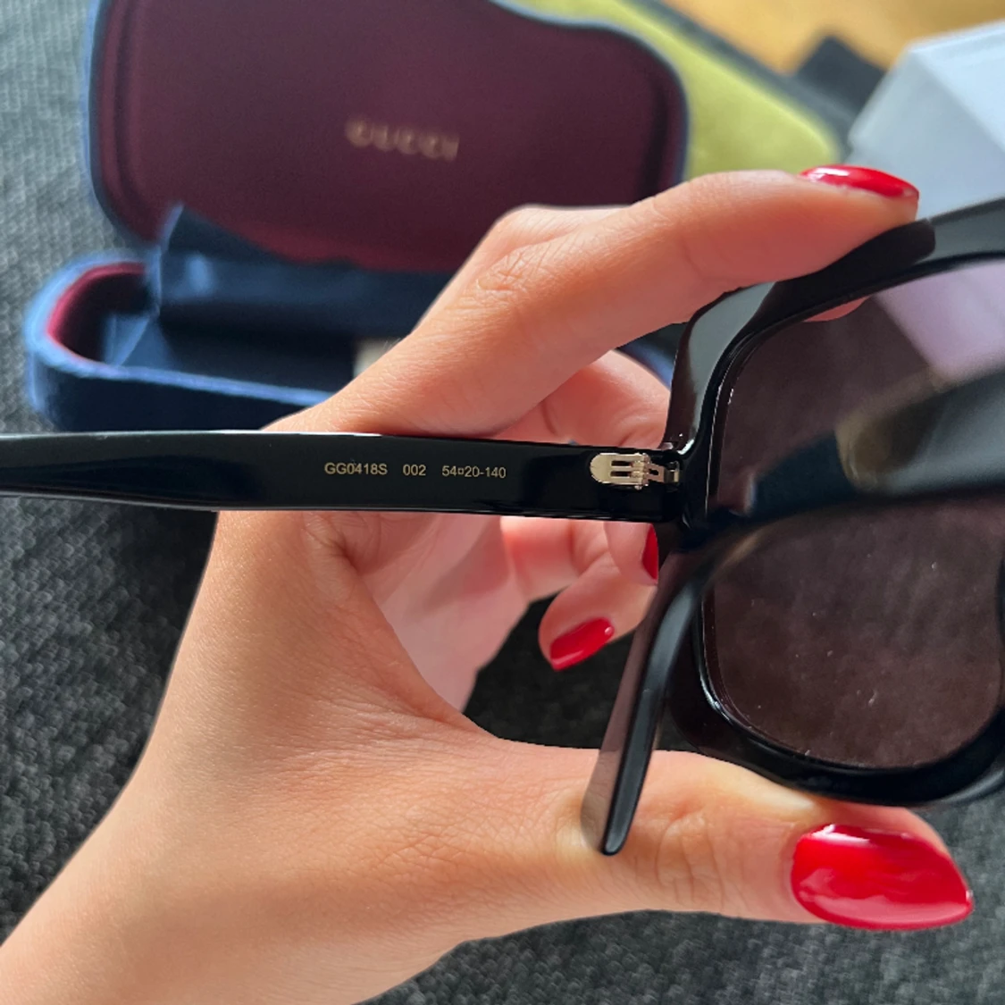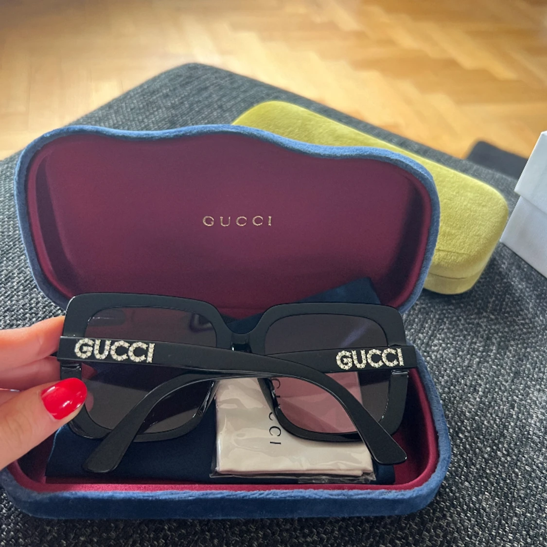 Säljer dessa helt nya Gucci solglasögon. Fodralet är något sönder pga råkat blivit mossat. Såklart äkta. Nypris ca 2800kr. Säljer för 1800kr.