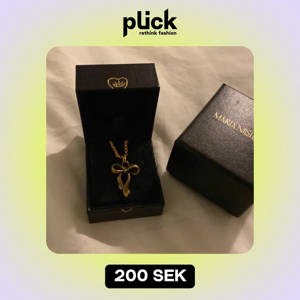 Säljer ett elegant guldhalsband liknande Maria Nilsdotter med en vacker rosett som hänge. Perfekt för att ge en touch av lyx till vilken outfit som helst. Perfekt presentidé eller för att skämma bort dig själv!