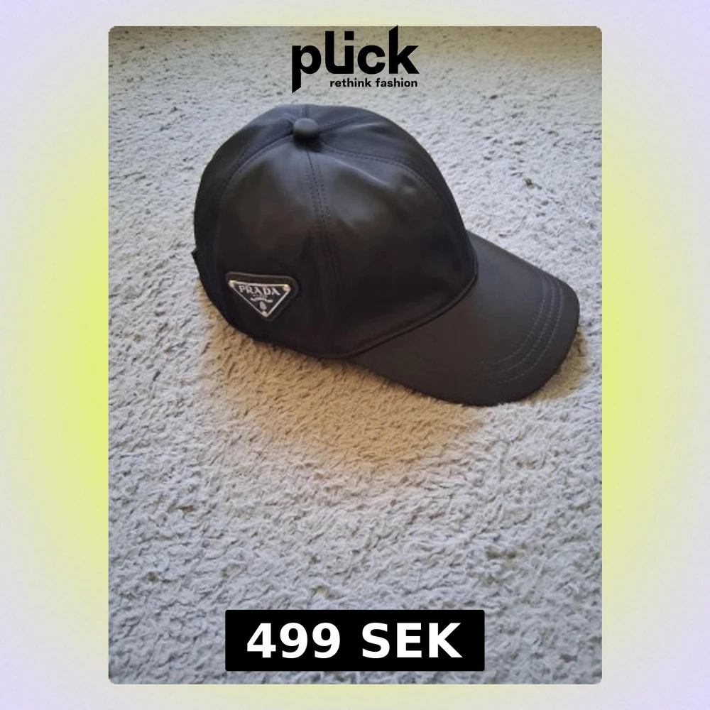 Snygg svart keps från Prada med klassisk böjd skärm och ikonisk metalltriangel-logga på sidan. Tillverkad i återvunnen nylon (Re-Nylon) med stilrena sömmar och justerbar passform. Perfekt för dig som gillar exklusiva accessoarer med street-vibe.