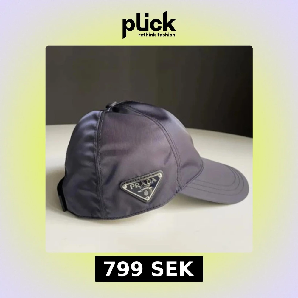 Snygg svart keps från Prada med klassisk böjd skärm och ikonisk metallogo på sidan. Kepsen är tillverkad i glansig nylon som ger en exklusiv känsla och har justerbar rem baktill för perfekt passform. Perfekt accessoar för en trendig streetstyle.