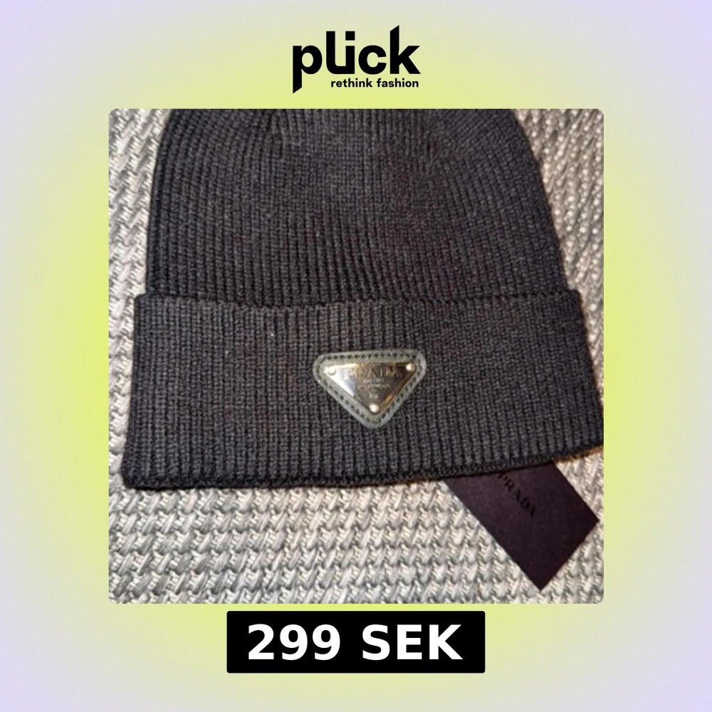 Snygg ribbad mössa från Prada i både svart och grått. Mössan har en uppvikt kant och en metalllogga framtill. Perfekt för att hålla värmen med stil.