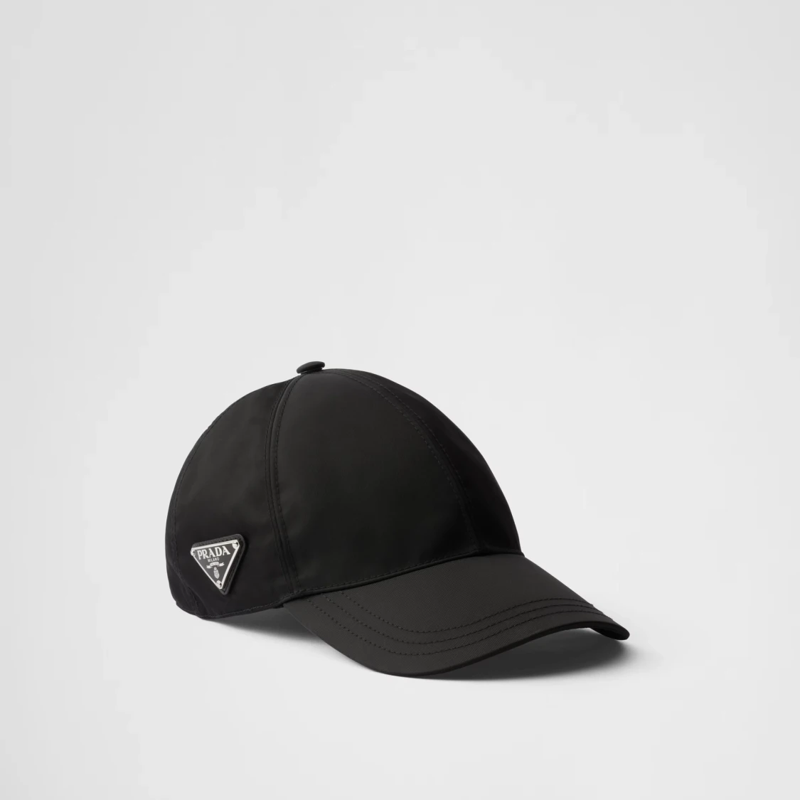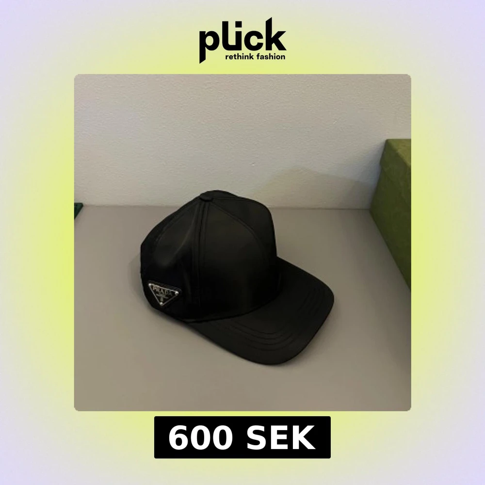 Snygg svart keps från Prada med klassisk böjd skärm och ikonisk metallogo på sidan. Kepsen är tillverkad i glansig nylon som ger en lyxig känsla och modern look. Perfekt accessoar för att lyfta din outfit med exklusiv streetstyle. Pris kan diskuteras