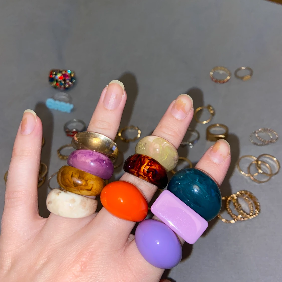 Säljer flera ringar då jag har aldeless för många och inte hinner använda alla. Det är blandade märken bla pull&bear, behrska, asos, hm, shein. Säljer de billigt! Hör av er vid intresse och skriv vilken/vilka ring ni skulle vara intresserade av att köpa!💗💝 Som tur är det billigt att skicka små saker på posten men beroende på hur många ni ska ha och vad vikten blir nu men ca 12kr kostar det att skicka! Det är olika priset för de olika ringarna så skriv vilken för pris!!