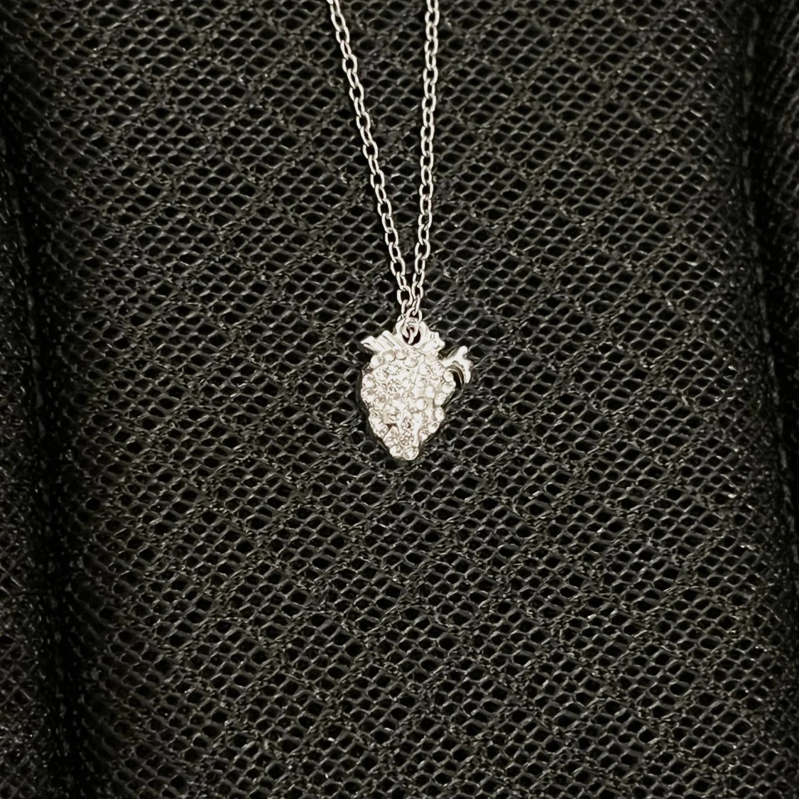 Elegant unisex-halsband med ett litet hjärta (1 cm) täckt av sparkling stones. 50 cm kedja i rostfritt stål