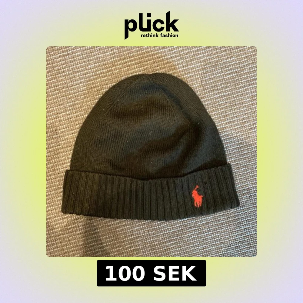 Svart ribbstickad mössa från Polo Ralph Lauren.