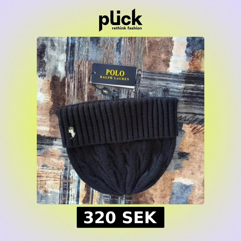 Svart kabelstickad mössa från Polo Ralph Lauren med bred ribbad uppvikning och klassisk broderad logga i vitt framtill. Tillverkad i mjuk ullblandning med 26% återvunnen nylon. One size och perfekt för kyliga dagar.