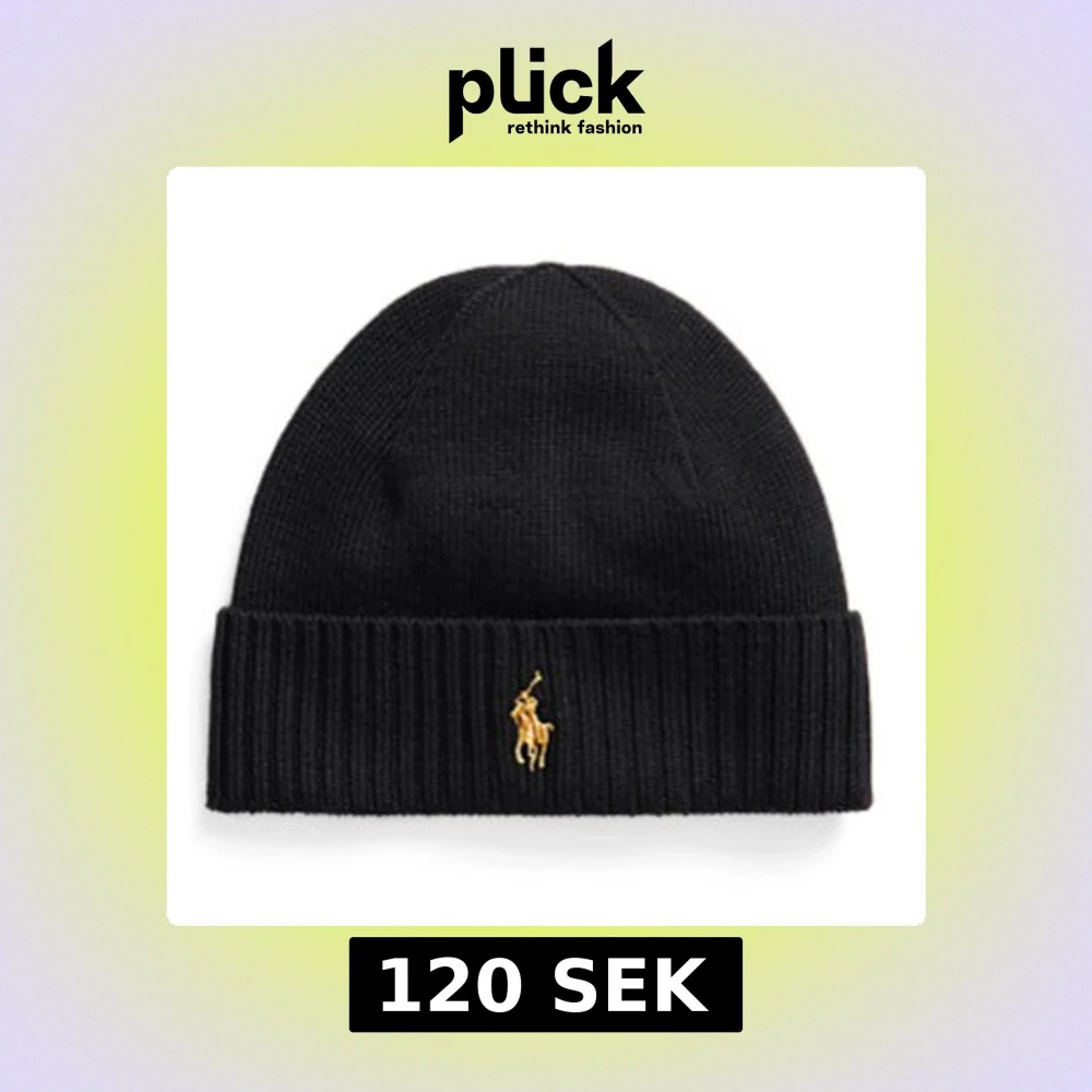 Svart ribbstickad mössa från Polo Ralph Lauren med klassisk gul broderad logga framtill. Enkel och stilren design med uppvikt kant som ger extra värme. Perfekt accessoar för kyliga dagar och snygg till streetwear.
