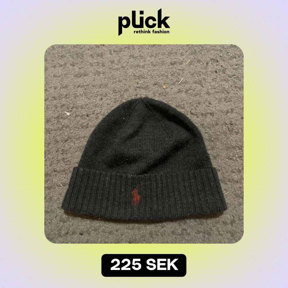 Snygg svart stickad mössa från Ralph Lauren med broderad logga i rött framtill. Perfekt för kyliga dagar och ger en stilren look.