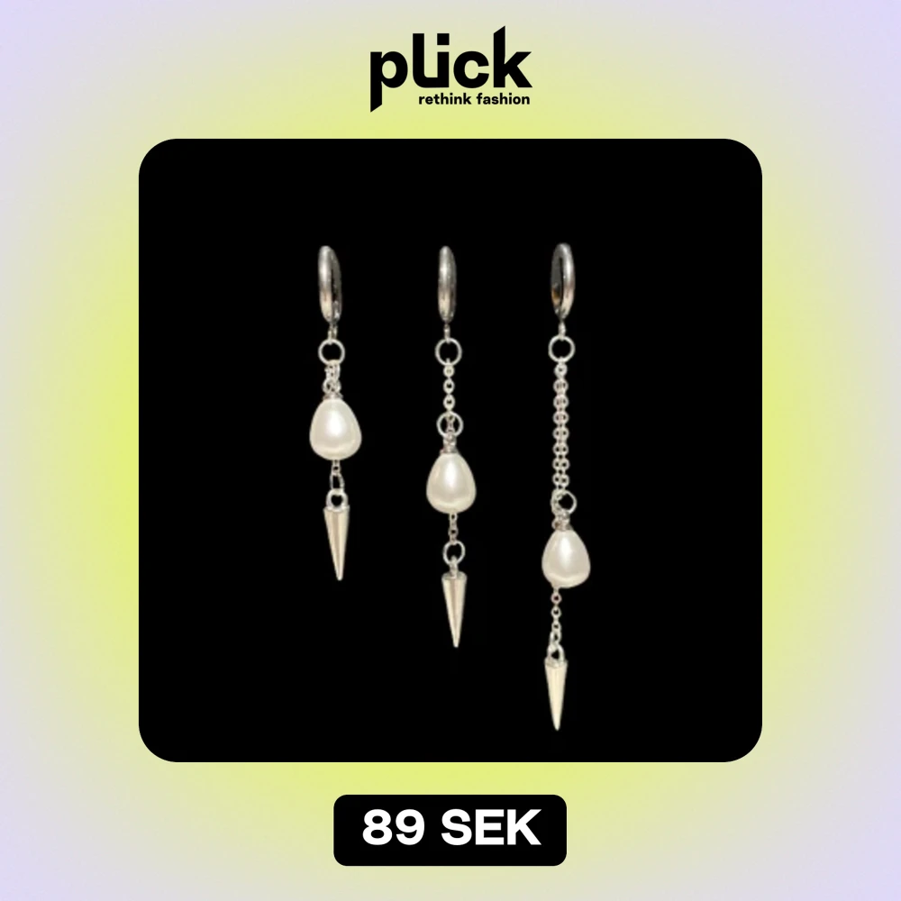 Örhänge med krok i rostfritt stål. De säljs i styck. Finns i tre storlekar. S = 4cm M = 5cm L = 7cm (finns även i guld)