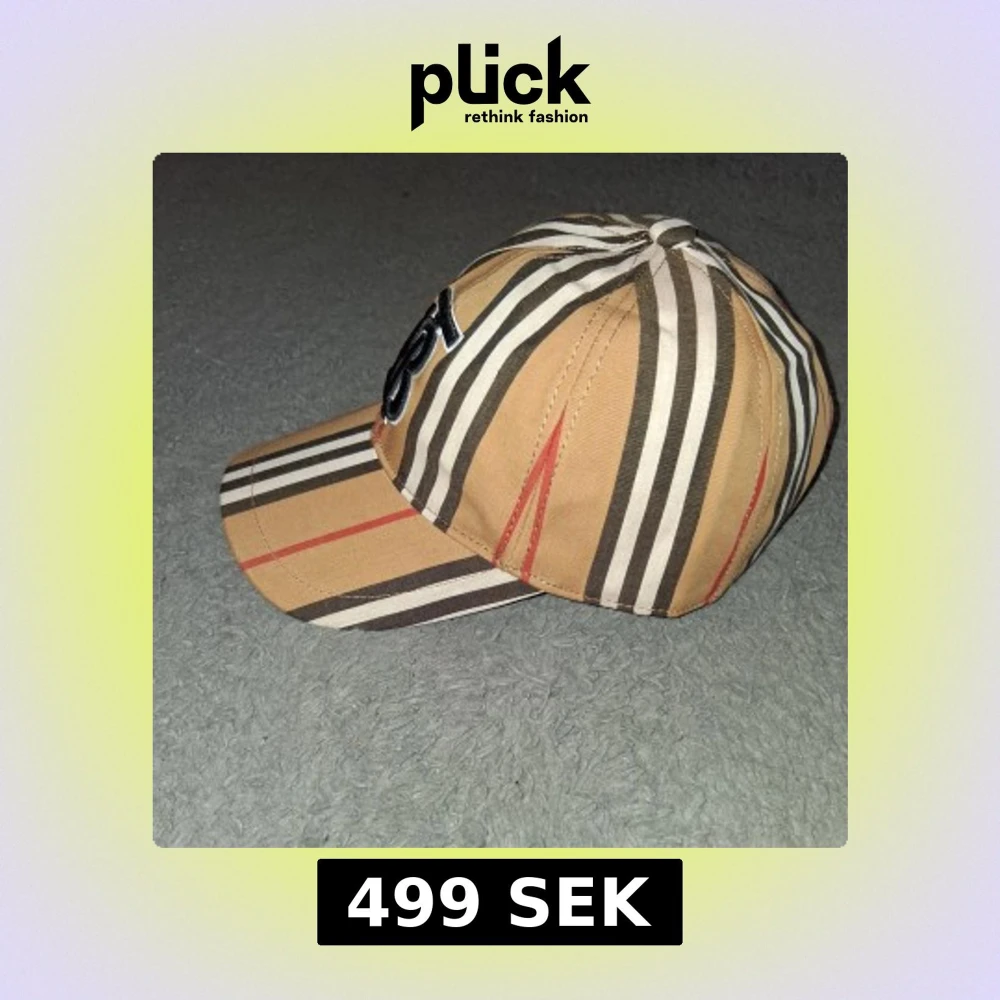 Snygg keps från Burberry med klassiskt randigt mönster i beige, svart, vitt och rött. Framtill finns en broderad svart och vit logga. Kepsen har justerbar knäppning bak och är tillverkad i bomull med detaljer i kalvskinn. Perfekt för dig som vill sticka ut med stil.