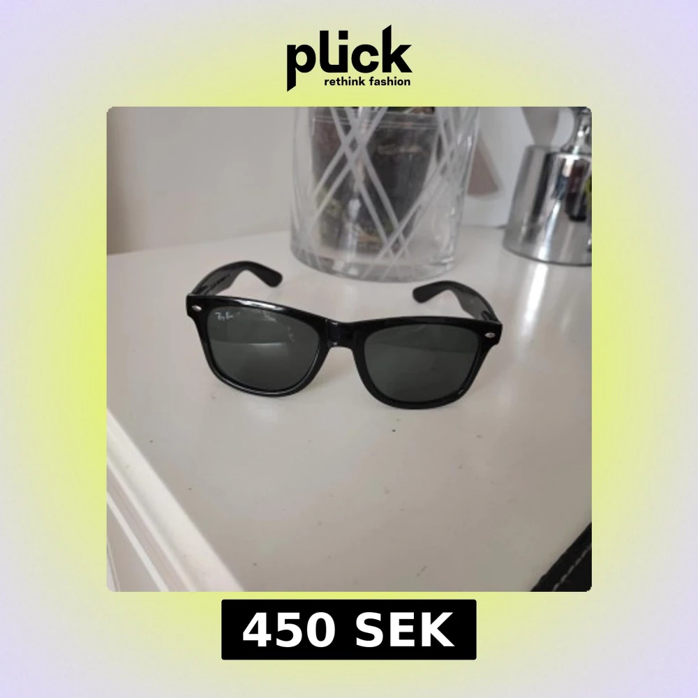 Klassiska svarta solglasögon från Ray-Ban med Wayfarer-form. Bågarna är i svart plast och glasen är mörka. Perfekt accessoar för soliga dagar och tidlös stil.