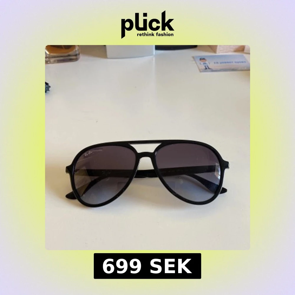Snygga svarta solglasögon från Ray-Ban i klassisk pilotmodell. De har en svart ram och mörka glas. Perfekta för en stilren look. Kommer med ett brunt fodral och putsduk. Nypris 1100kr mitt pris 699kr