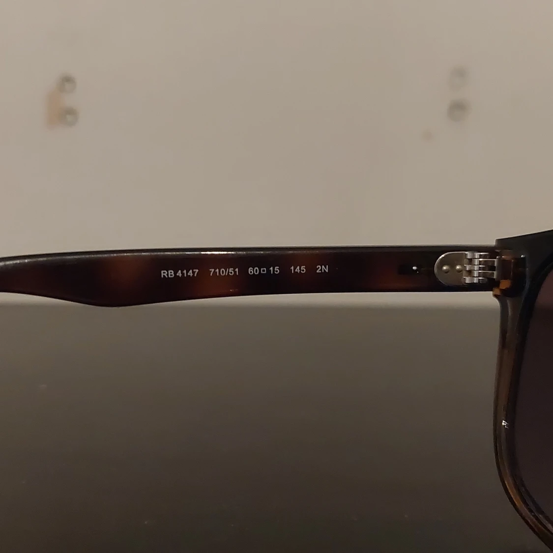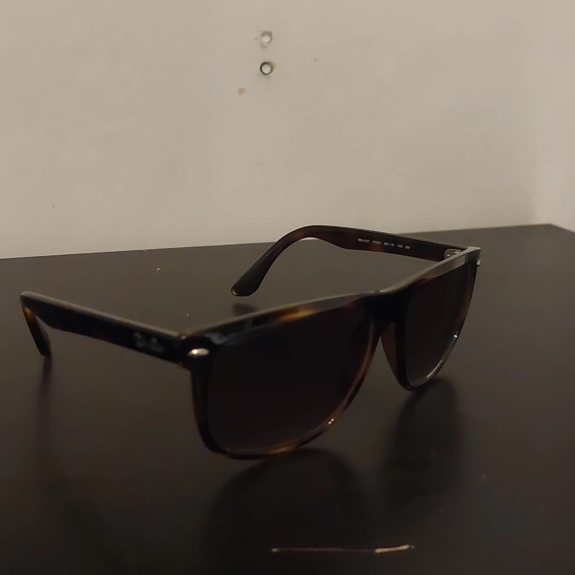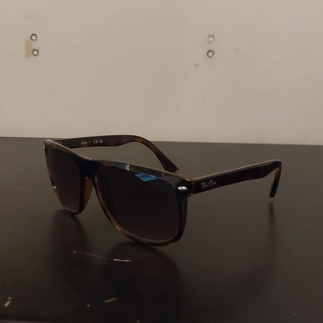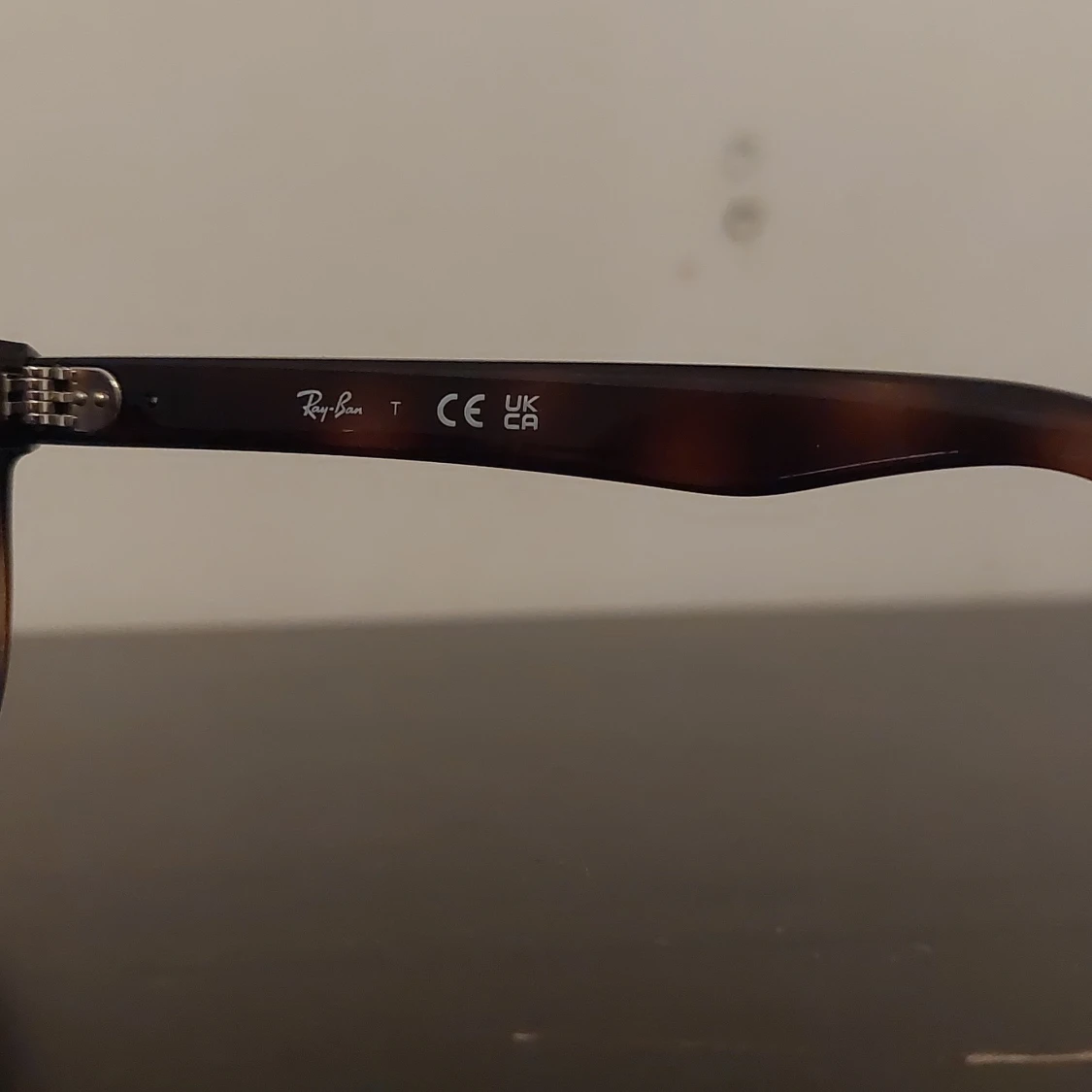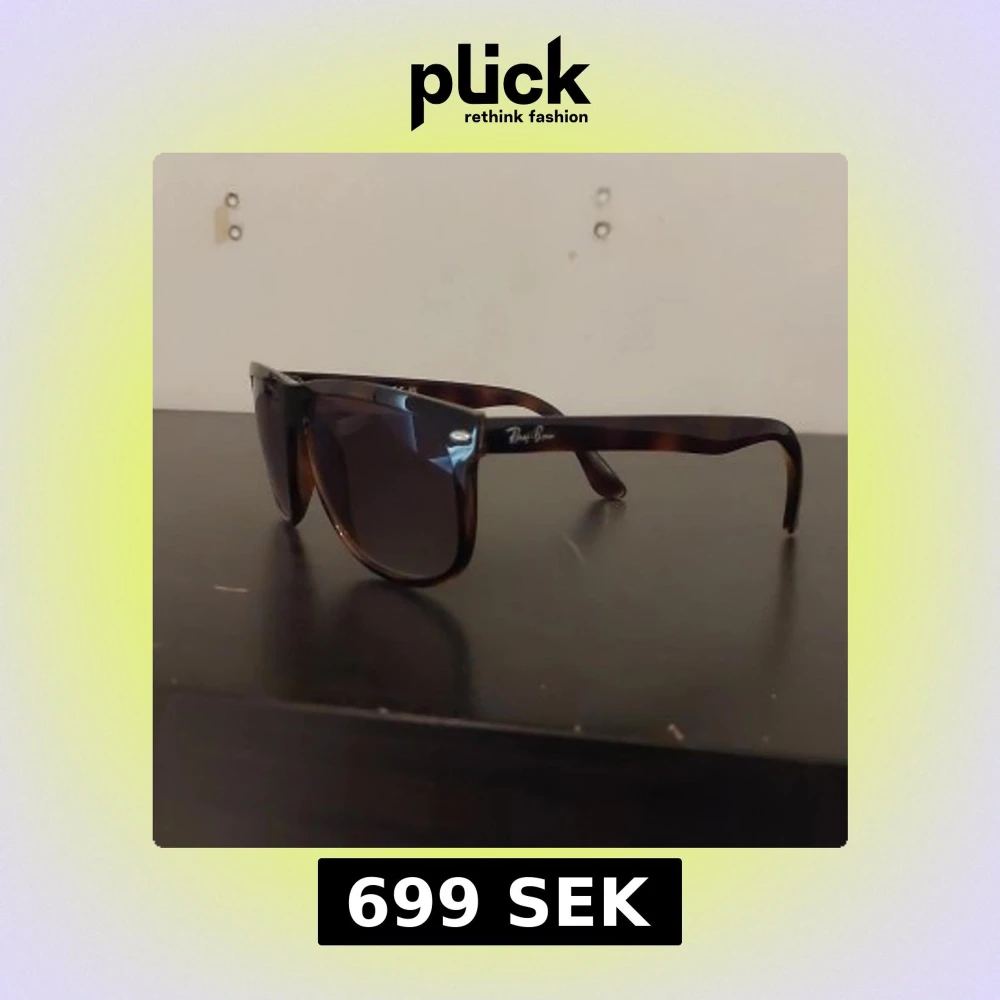 Snygga Ray-Ban solglasögon med brunmelerad båge och mörka glas. Modellen har en klassisk, fyrkantig form och diskret Ray-Ban-logga på skalmen. Perfekta för dig som vill ha en grisch och clean look.(pris kan diskuteras vid snabb affär)