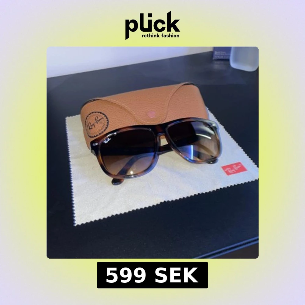 Snygga Ray-Ban Wayfarer solglasögon i brunmelerad plast med mörka glas. Klassiska diskret Ray-Ban-logga på linsen. Säljer dom nya eftersom dom inte passade mig. Stora i storleken! Kommer inte med fodral!!