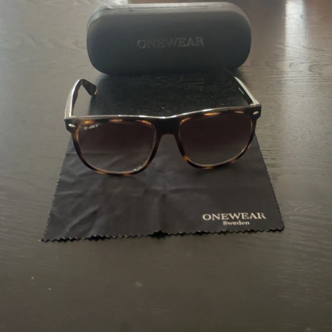 Snygga solglasögon från ONEWear med klassisk wayfarer-form och brunmelerad båge som ör inspirerande av ray ban boyfriend (ser exakt lika dana ut), pris kan diskuteras!!