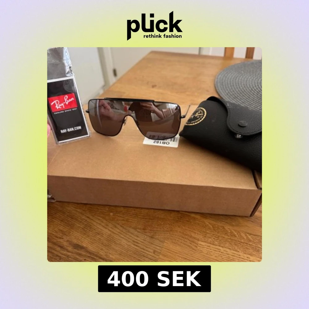 Snygga svarta solglasögon från Ray-Ban med hel lins och minimalistisk båge. Glasögonen har en modern, sportig look och är tillverkade i Italien. Perfekta för dig som vill sticka ut med en stilren accessoar. Ingen skador och fodral och puts duk följer med