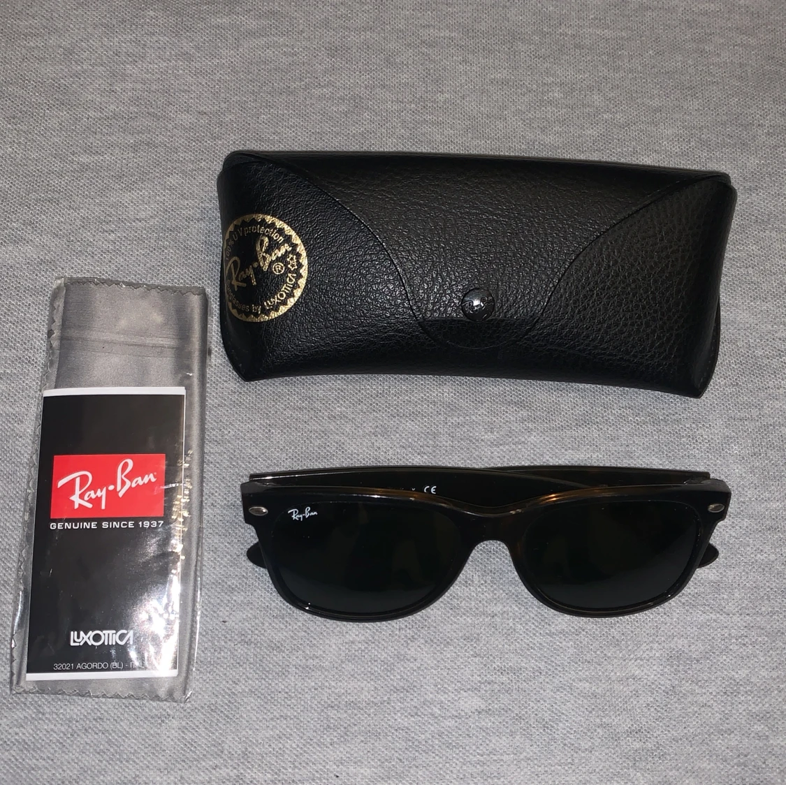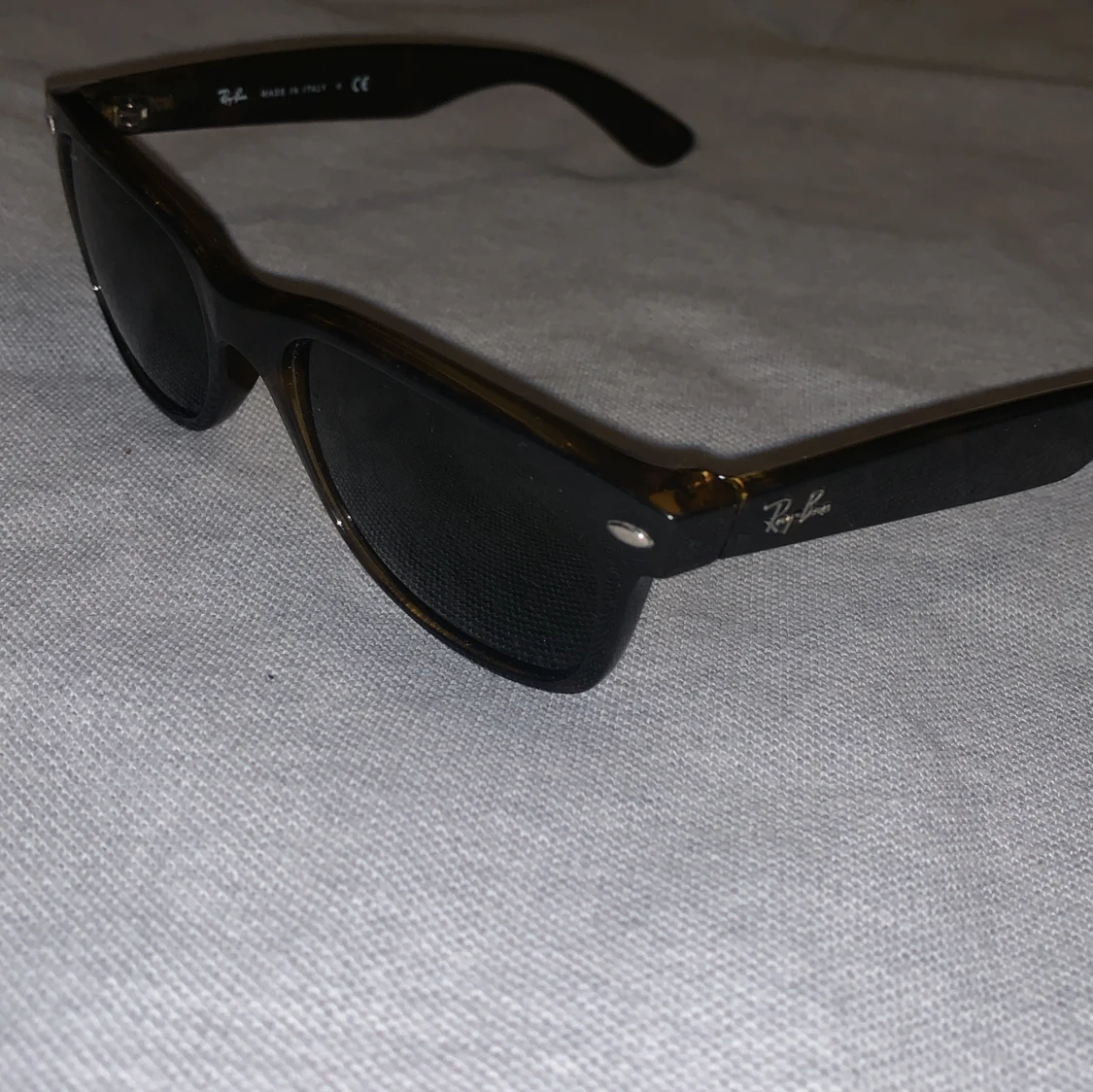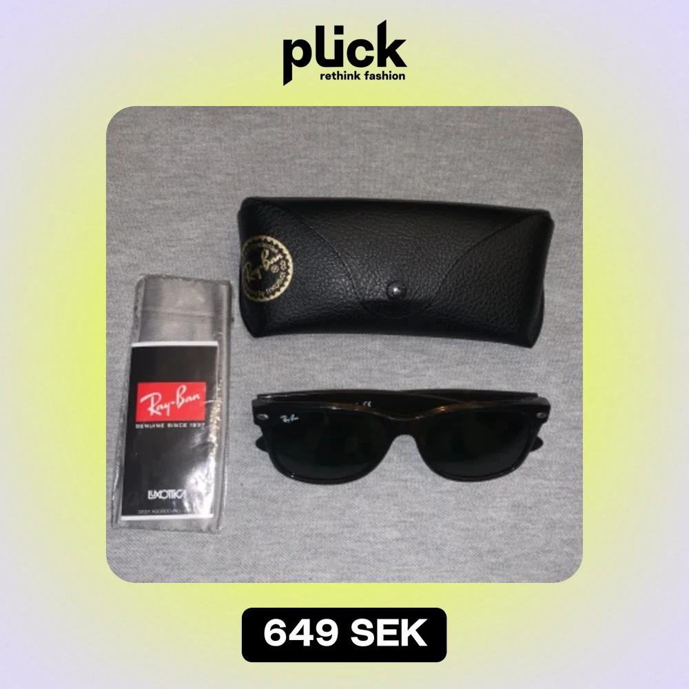 Tjenare! Säljer ett par nästan helt nya rayban New Wayfarer inget fel på brillorna men fodralet har tyvärr släppt lite där man öppnar som du kan se på bilden!☺️ skriv till mig om du har någon fråga eller minsta fundering!🤔