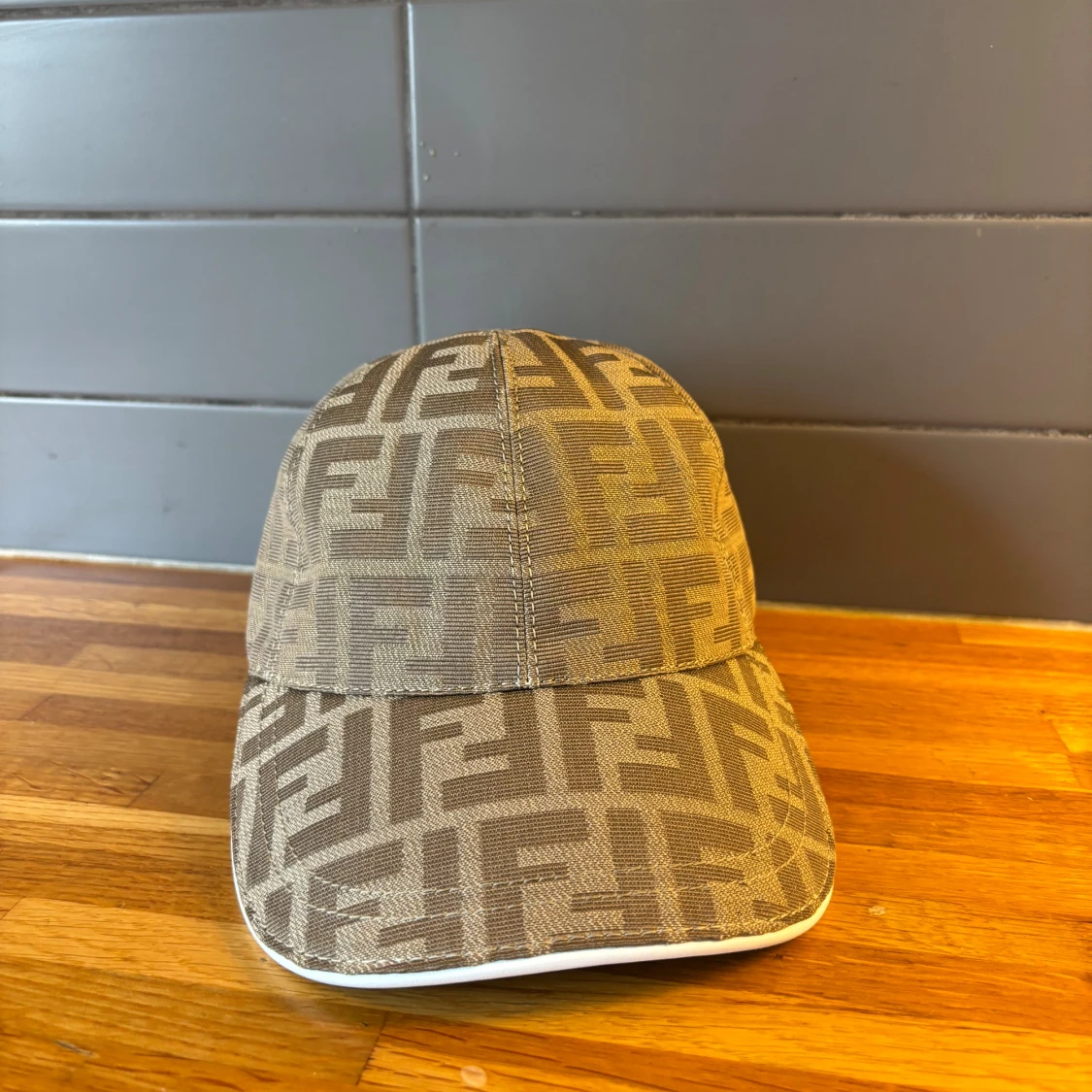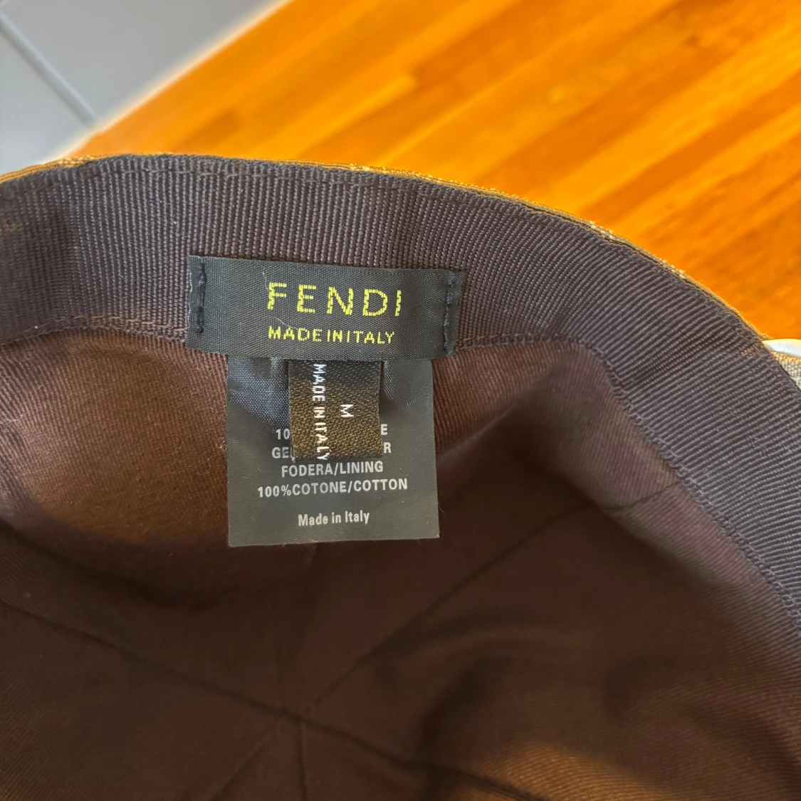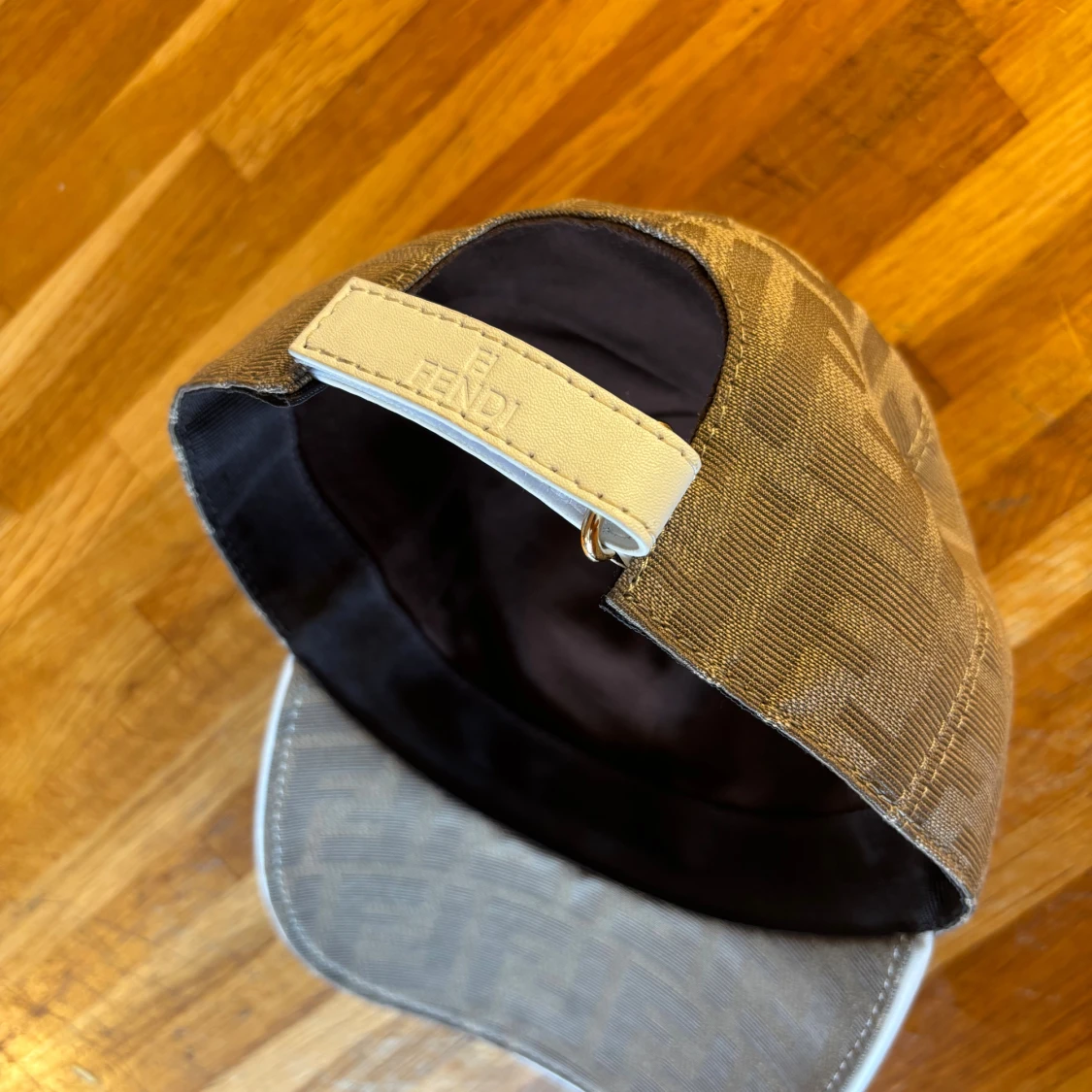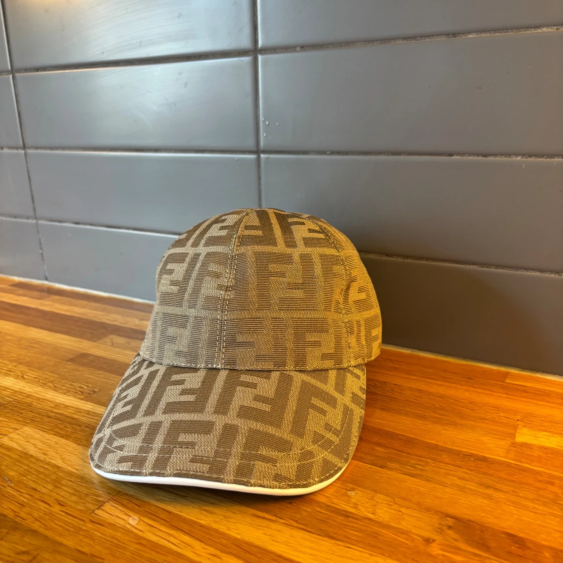 Snygg beige keps från Fendi med det ikoniska FF-logomönstret över hela kepsen. Justerbar rem baktill i ljust läder med Fendi-logga. Kepsen har böjd skärm med vit kant och är tillverkad i ett slitstarkt tygmaterial. Perfekt för dig som vill sticka ut med en lyxig accessoar.