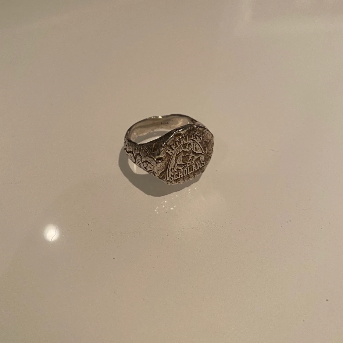 2 st Reckless scholars ringar i silver (925). Storlek S och M som är deras storlekar. Sjukt ovanliga! Pris per ring: 2000kr Kan diskuteras.