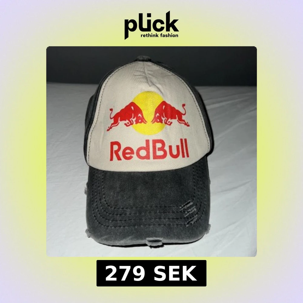 Cool keps från Red Bull med grått tyg och vit frontpanel. Framsidan har Red Bulls logga i rött och gult. Kepsen har böjd skärm och justerbart metallspänne bak för perfekt passform.