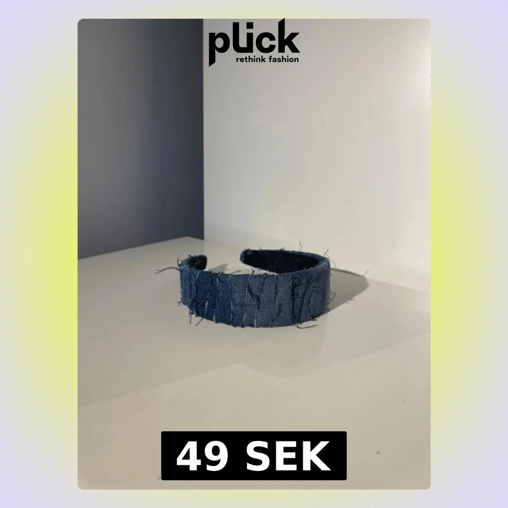 LjusblĂ„tt diadem av Ă„tervunna jeans med remsor, med silke inuti!đ Diademet Ă€r ca 12 cm diameterđ