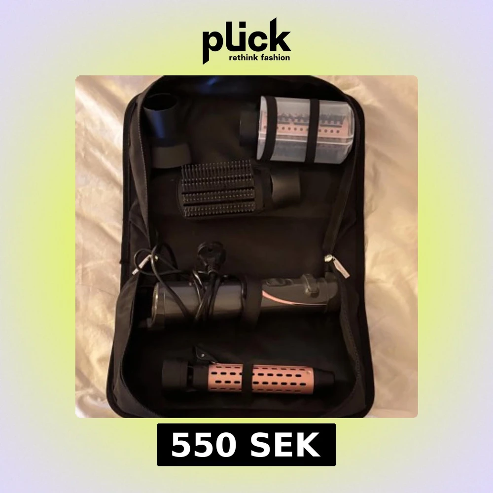 Ett kit som innehåller två olika värmeborstar, hårfön och en locktång. Använd endast 2 gånger. Säljer för att jag har en dyson. Köpt för 700kr.