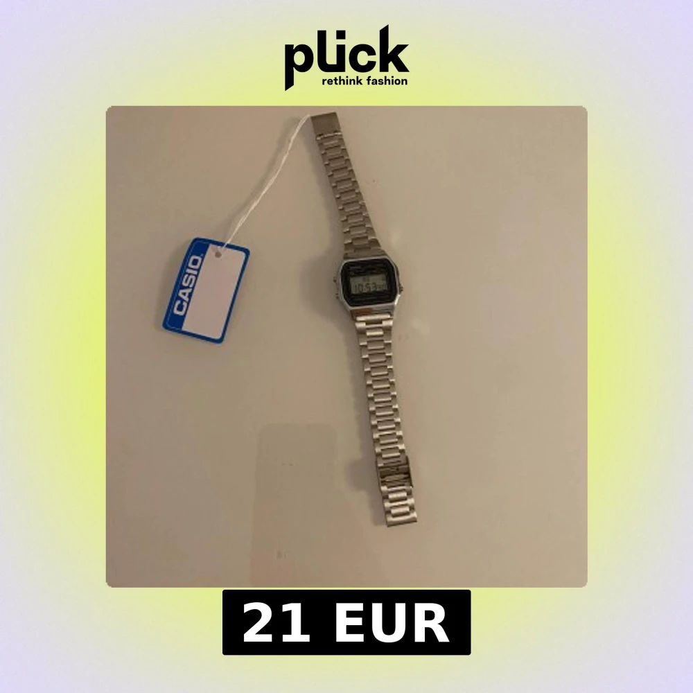 Casio digital klocka med klassisk rektangulär display och länkarmband i rostfritt stål. Modellen är A158W med vattenresistens och alarmfunktion. Snygg retrostil med tydlig LCD-skärm och metallisk finish. Perfekt för dig som gillar tidlös design och funktion.