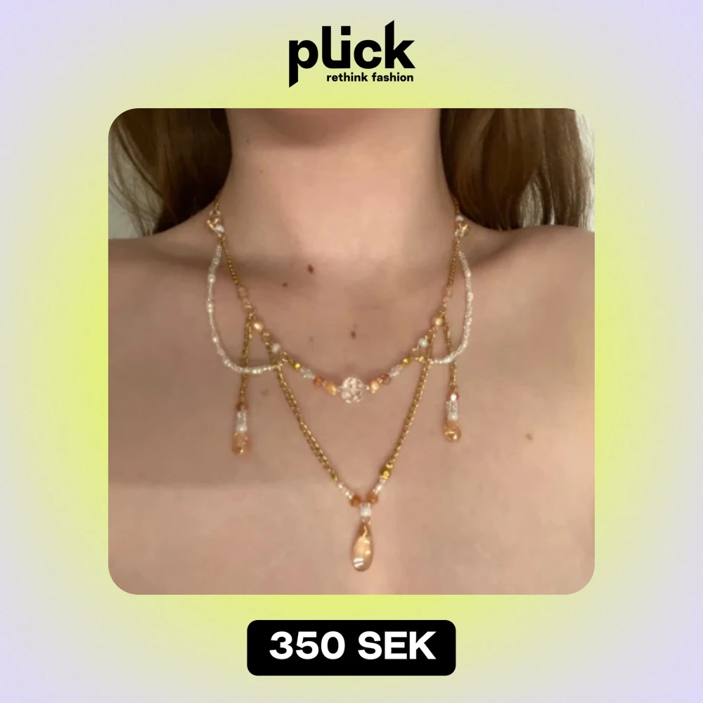 Säljer ett vackert flerlager halsband med pärlor och guld detaljer. Halsbandet har flera kedjor i olika längder, dekorerade med pärlor och små guldpärlor. Det finns också droppformade hängen som ger en elegant touch. Perfekt för att piffa upp vilken outfit som helst!