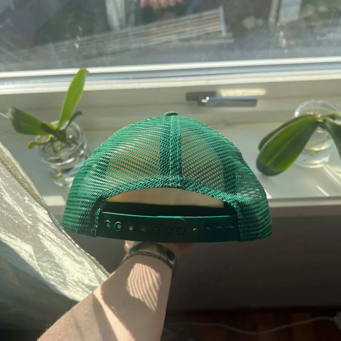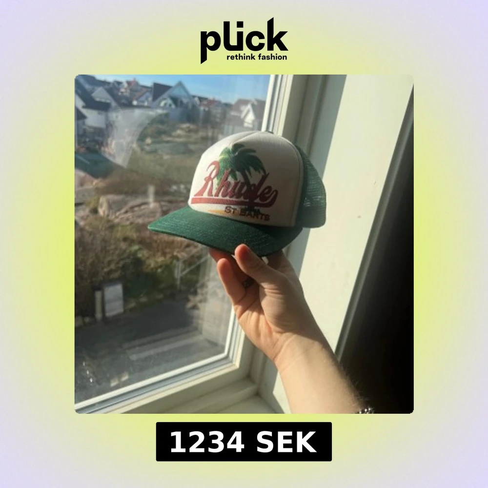 Snygg keps från Rhude med grön mesh och vit front. Framsidan har ett tryck med palmer och texten 'Rhude St. Barts'. Justerbar baksida för perfekt passform. Söker bud, byten intressant