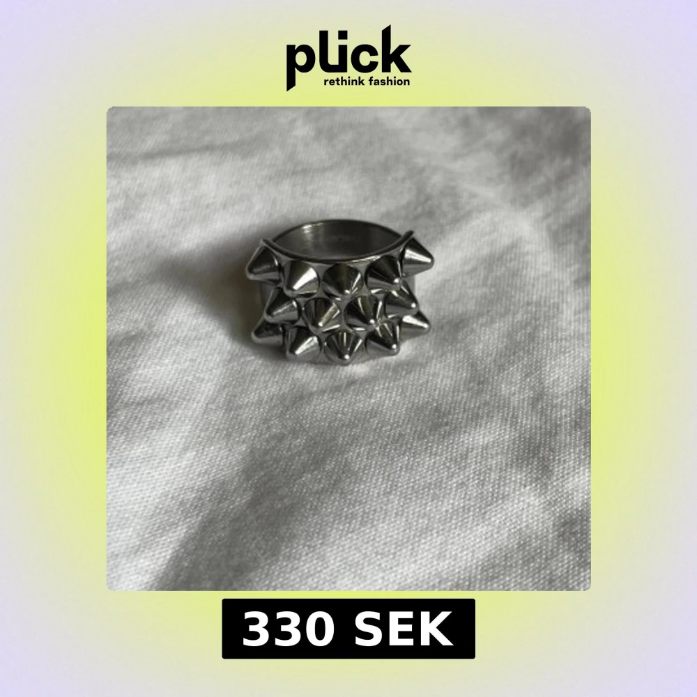 Cool och chunky ring i silverfärgad metall från Edblad. med tre rader av spetsiga nitar runt hela framsidan. Perfekt för dig som gillar Stockholmstil. Storlek M (17.5 mm) Ny utan prislapp. Nypris 399 säljer för 330