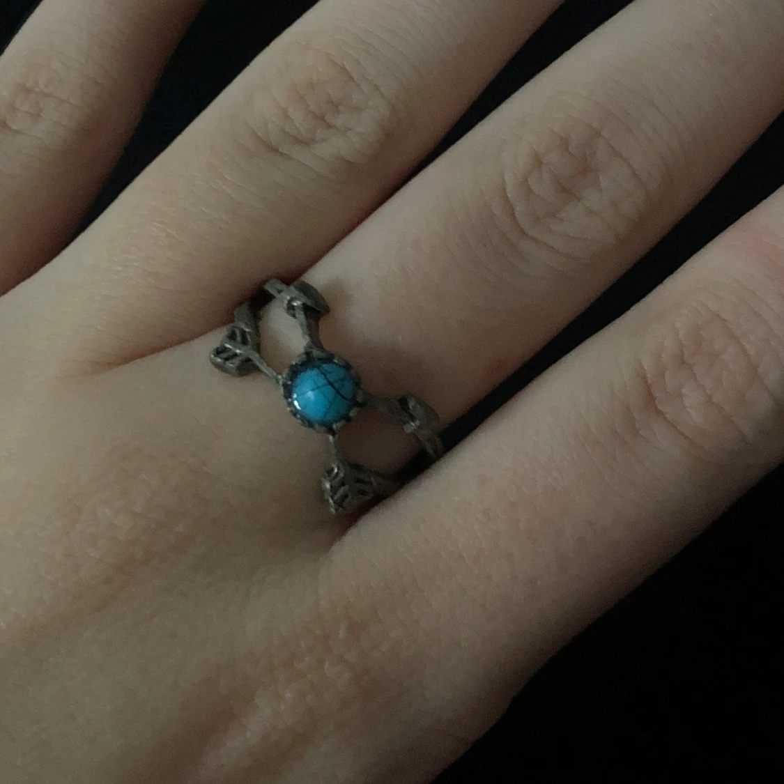 ❗️Tar endast emot Swish, skriv t mig vid köp ❗️Unik ring med en vacker turkos sten i mitten. Ringen har en antik finish med detaljerade mönster runt stenen. Perfekt för att ge en bohemisk touch till din stil.